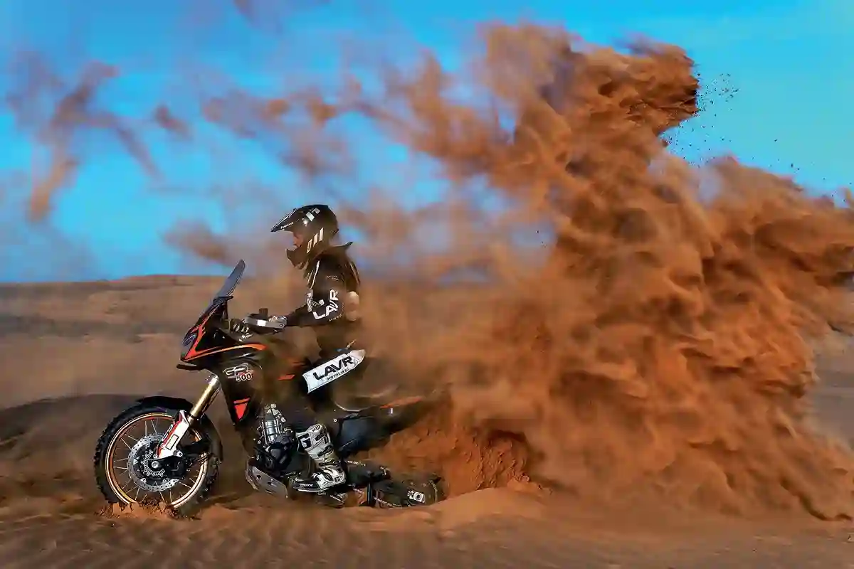 Пятисоткубовый GR 500 21/18, на которых заявилась в гонку команда «Роллинг Мото», — один из флагманов туристической линейки GR, сделан по классической схеме и внешне похож на знаменитую хондовскую «Африку». В стальной раме установлен двухцилиндровый 4‑тактный двигатель Loncin с жидкостным охлаждением и инжектором от Bosch. Надежный, неприхотливый и хорошо известный движок «срисованный» с Honda CB 500X, работает в паре с 6‑ступенчатой МКП. Cпереди стоит телескопическая вилка-перевертыш SZC Pro с диаметром пера 41 мм и ходом 200 мм. Вилка оснащена регулировками сжатия (40 щелчков) и отбоя (32 щелчка). Сзади установлен моноамортизатор SZC с ходом 150 мм, регулировкой сжатия (32 щелчка) и отбоя (28 щелчков). Прочные спицованные колеса диаметром 21 дюйм спереди и 18 дюймов сзади специально для гонки обули в покрышки Borilli 7 Days Rally. Тормоза с отключаемой ABS, что важно на бездорожье, cпереди два диска диаметром 298 мм с 4‑поршневыми суппортами, сзади один диск диаметром 240 мм и 2‑поршневой суппорт — этого вполне достаточно, чтобы остановить байк снаряженным весом 190 кг в любой ситуации.